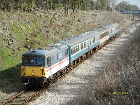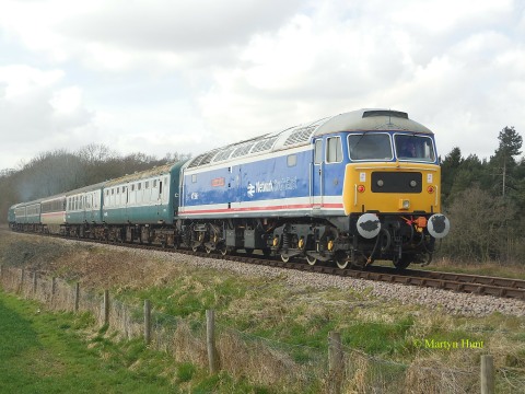 47596 Aldeburgh Festival on the tail end of a train hauled by 47367 Kenny Cockbird at Crownthorpe on 27 03 2015
